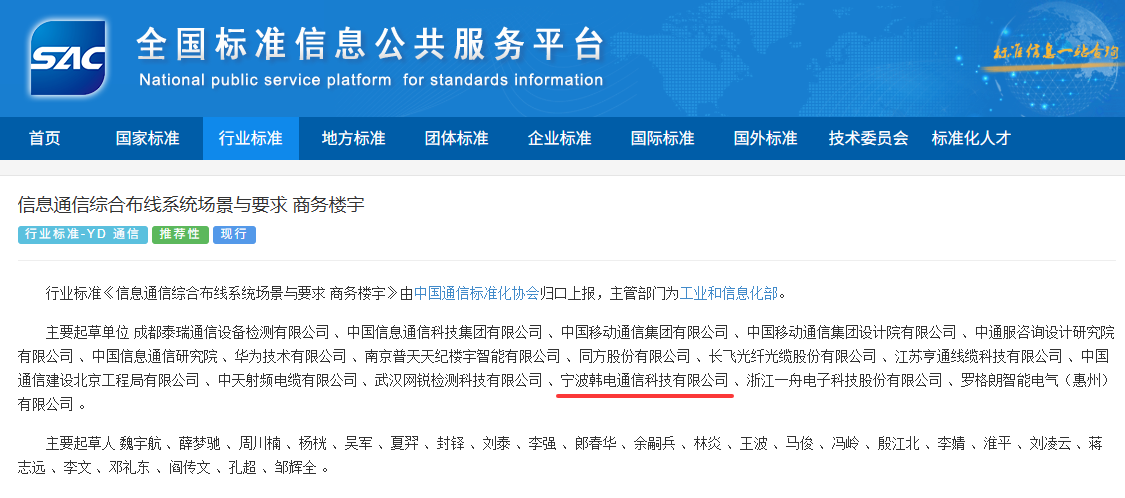 韩电通信深度参与行业标准制定,引领商务楼宇布线新纪元!![]() 韩电通信深度参与行业标准制定,引领商务楼宇布线新纪元! 商务楼宇的综合布线系统,正式迎来了全新的行业标准与建设蓝图。韩电通信作为主要起草单位,积极参与了信息通信综合布线系统行业标准《信息通信综合布线系统场景与要求 商务楼宇》的制定工作。这一重要文件的发布,标志着我国商务楼宇综合布线系统迈向了更规范、高效和智能化的新阶段。 ![]() 一、标准体系完善,韩电助推落地 ![]() 信息通信综合布线系统作为现代建筑的“数字动脉”,其标准化程度直接关系到通信质量与用户体验。当前,该领域的行业标准主要分为三大类:通用规范、测试标准以及场景与要求。在这一体系架构下,根据不同应用场景的差异化需求,标准进一步细分为商务楼宇、工业互联网、住宅、数据中心和分布式建筑园区等五大方向。 《信息通信综合布线系统场景与要求 商务楼宇》正是这一标准体系中的重要组成部分。该文件聚焦于商务楼宇这一高频、高要求的应用场景,明确规定了综合布线系统的结构原理、性能指标及测试方法,确保其能够稳定支撑语音、数据、图文和视频等多种现代化办公应用。 二、赋能智慧楼宇,树立高效标杆 ![]() 作为信息通信领域的创新引领者,韩电通信凭借深厚的技术积累和丰富的行业实践经验,为商务楼宇布线标准的制定提供了重要支持。文件内容充分体现了韩电通信对高端商务场景需求的深刻洞察: 系统化架构设计:规范了商务楼宇综合布线系统的结构原理,确保网络高效、稳定且易于扩展; 高性能指标要求:明确了传输性能、抗干扰能力等关键技术参数,保障多业务并发时的流畅体验; 标准化测试流程:通过严谨的测试要求,确保每一环节符合高质量通信标准。 值得一提的是,本标准与YD/T 926《信息通信综合布线系统》系列标准紧密结合,形成了一套完整、可落地的技术规范,为楼宇业主、设计单位及施工团队提供了清晰的技术指引。 三、共创行业未来,驱动产业升级 韩电通信的深度参与,不仅是技术实力的体现,更是企业对行业责任的担当。未来,韩电通信将继续携手行业伙伴,积极参与更多细分场景的标准制定工作,以创新技术赋能千行百业,共同构建万物互联的智能世界! ![]() 关于我们 宁波韩电通信科技有限公司,自2002年成立以来深耕综合布线领域二十余载,现已成为集研发、生产、销售及系统解决方案服务于一体的全球化通信科技企业。 【核心优势】 ✅全场景布线方案专家 专注数据通信电缆、安防弱电线缆、光纤光缆及智能布线系统研发,提供从硬件到系统的全链路智慧连接方案。 ✅全球品质认证矩阵 • IS09001质量管理体系、IS014001环境管理体系及IS045001职业健康安全管理体系认证; • IQNet质量管理体系、IQNet环境管理体系及IQNet职业健康安全管理体系认证; • 权威产品认证:工信部TLC泰尔、TSK、ETL、CE、RoHS、Delta、GHMT、3C、欧盟CPR等多项产品认证; • 连续多年蝉联行业双十大殊荣:中国工程勘察设计行业十大优秀品牌/中国智能建筑行业十大匠心品牌等。 ✅国际化的中国智造 产品辐射全球30+国家地区,在欧美及东南亚市场建立长效合作网络,布线技术获多国工程标准认证。 【标杆工程图谱】 • 智慧教育:东南大学、哈工程、中科大等顶尖学府数字校园神经系统 • 智慧医疗:上海同济医院、成都温江人民医院等三甲医院智能诊疗体系 • 智慧交通:福厦高铁、珠海横琴口岸、南京/重庆/成都地铁数字动脉 • 智慧云脑:阿里成都数据中心、电信内蒙古云基地、泰康大数据中心 • 智慧场馆:滁州奥体中心、郑州奥体中心等国家级赛事神经中枢 【品牌承诺】 始终秉持“成为国内品牌领先的综合布线专家”的愿景,坚持“提供高品质的产品解决方案和服务”的使命,以“新思维、新智造、新发展”为价值观,不断推动技术创新和产业升级。 ![]() THE END |